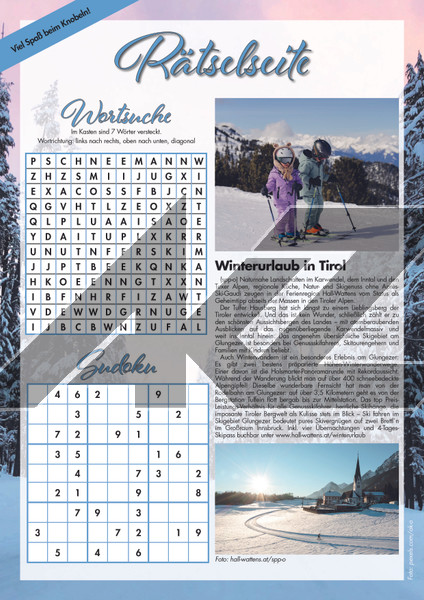 Rätselseiten Reise im Winter